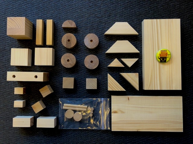 参加申込をして木材パーツのキットを受け取り、自由な発想でオリジナルの作品を作って提出します。